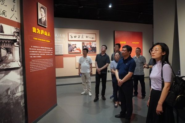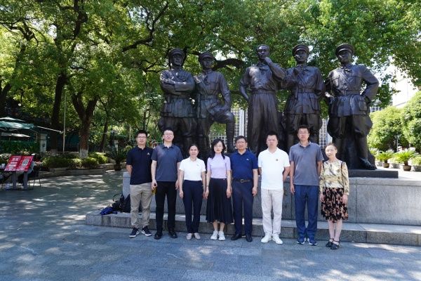 在南昌,学习交流团一行参观了八一南昌起义纪念馆,重温一段波澜壮阔的历史,缅怀老一辈革命家精神。在九江,大家来到九三学社全国传统教育基地——许德珩生平事迹馆瞻仰学习。作为九三学社的重要创始人,许德珩先生为民主革命和社会主义革命事业奋斗一生的事迹,深深感动了在场的每一位社员。九三学社九江市委会专职副主委温智给大家详细介绍了许德珩先生的生平事迹,大家驻足聆听讲解,细细观摩照片,交流学习心得。适值九三学社创社八十周年之际,两校统战部领导、九三学社基层委员会主委和社员们聚拢于许德珩先生铜像前,发出共同的心声,祝贺九三学社八十岁生日快乐!