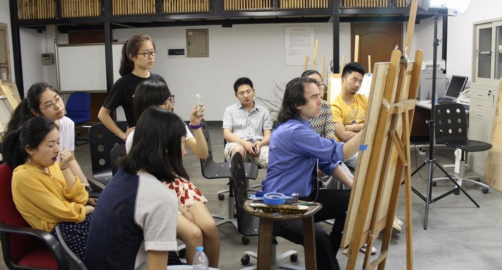5月28日上午,Dan Thompson教授为我院学生进行素描肖像示范,其精湛的技艺给学生留下了深刻的印象。Dan教授一边作画一边为学生分析绘画过程中的重要技法。他认为,绘画过程不单单是一个简单的作画过程,更是一个思想活动的过程。下午,教授带领学生参与课程实践。在课程实践中,他针对每个学生在绘画过程中产生的不同问题,用一张张小纸条把主要问题进行描述,让学生对自己的问题一目了然,并使其根据自己的问题进行逐一纠正。