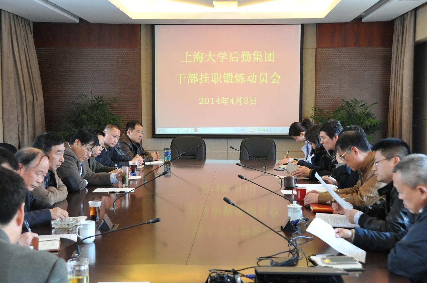 会上,陈民骅书记解读了《后勤集团关于推选青年骨干挂职锻炼的实施方案》。为进一步加大后勤干部的培养力度,推进青年骨干在基层工作中磨砺品质、锤炼作风、增长才干、提升境界,切实提高解决实际问题、做好群众工作的能力。经集团党政联席会议研究决定,从各中心选派部分青年骨干到集团各中心基层一线部门挂职锻炼。第一批挂职青年骨干为6人,挂职时间为2014年4月8日—7月8日。