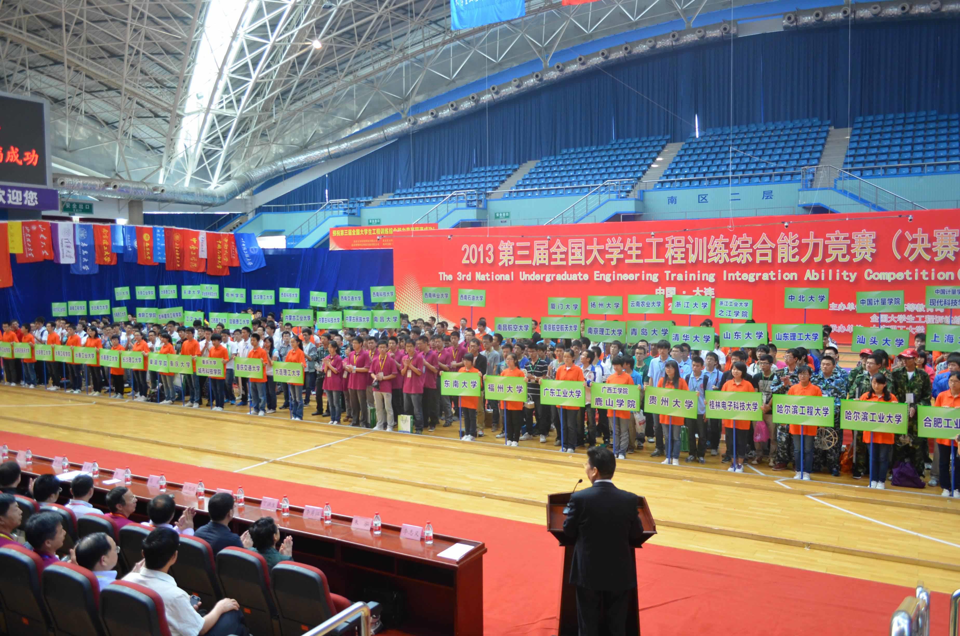 由教育部主办的第三届全国大学生工程训练综合能力竞赛于2013年6月7日-9日在大连理工大学刘长春体育馆举行,教育部高教司副司长刘桔,辽宁省教育厅副厅长张建华等领导出席比赛开幕式,来自全国25个省区77所高校的101支参赛队伍近800人参加本次比赛,比赛项目包括S形障碍绕行和8字障碍绕行两种类型,我校由工程训练中心选派的两支参赛队分别参加了两个项目的竞赛,荣获全国总决赛一等奖和二等奖的优异成绩!